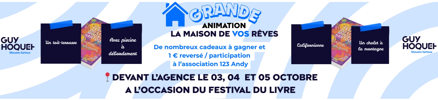 📍 Rendez-vous les 3, 4 et 5 octobre devant l’agence Guy Hoquet Mouans-Sartoux, en plein cœur du Festival du Livre, pour partager vos rêves et peut-être remporter l’un des lots !